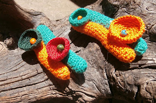 Com cerca de 7cm de comprimento, crocheteada em fio de algodão,aqui está mais uma pregadeira bem colorida para este Verão.